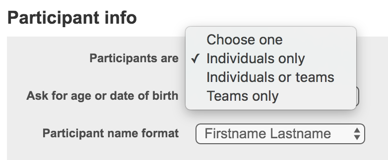 1. Set “Participants are = Teams”, or “Participants are = Individuals and teams”