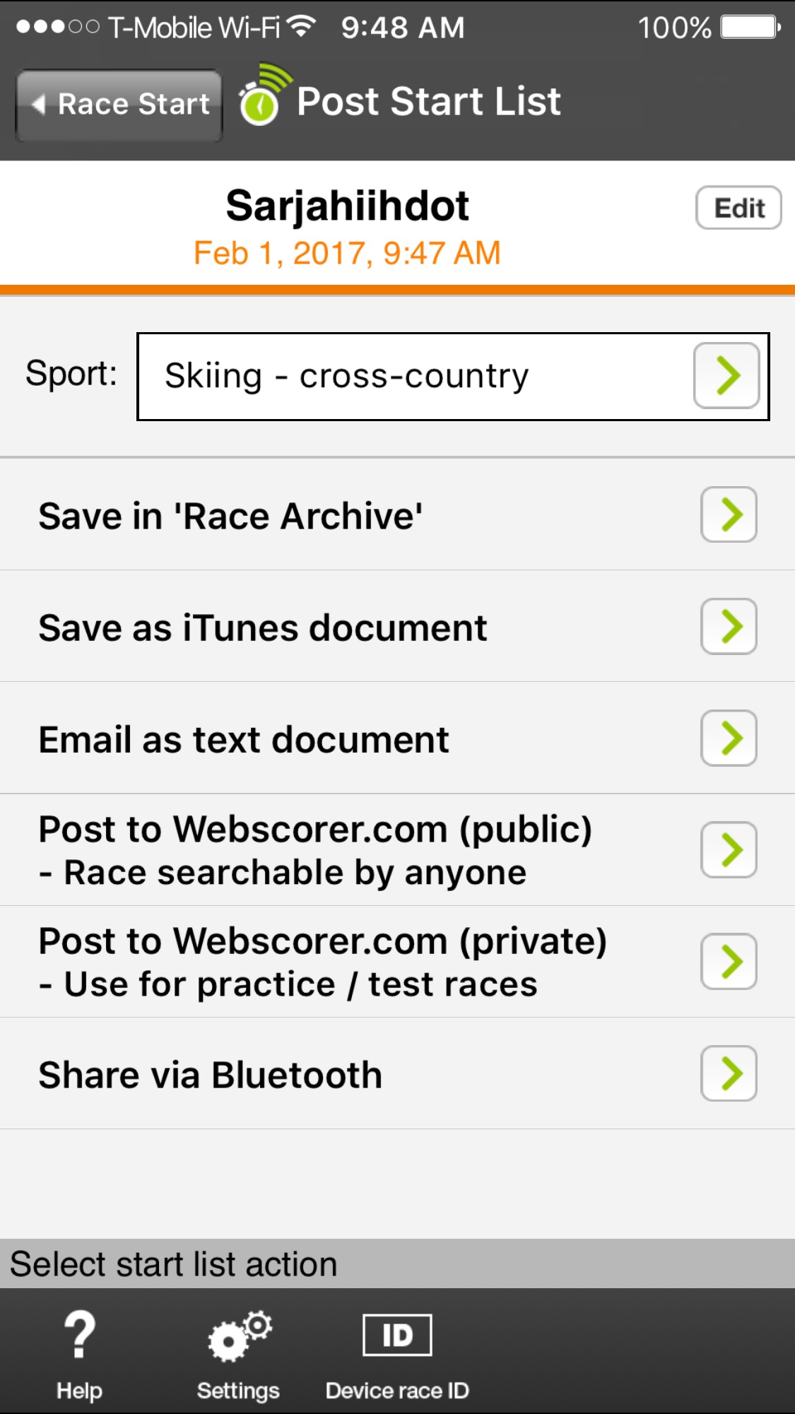 - Tap “Post to Webscorer.com” or tap “Share via Bluetooth”