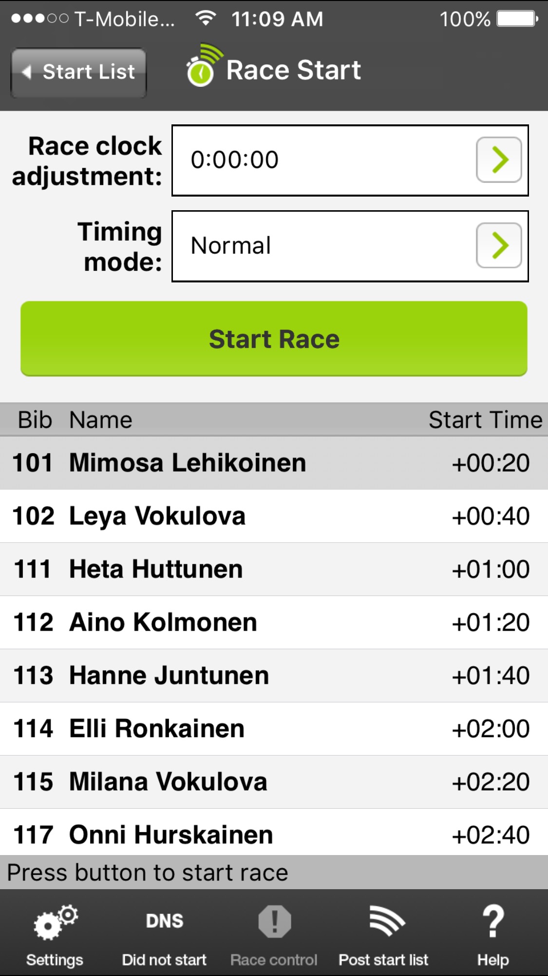 - You can use 2 devices if some racers are still starting while others are already finishing: