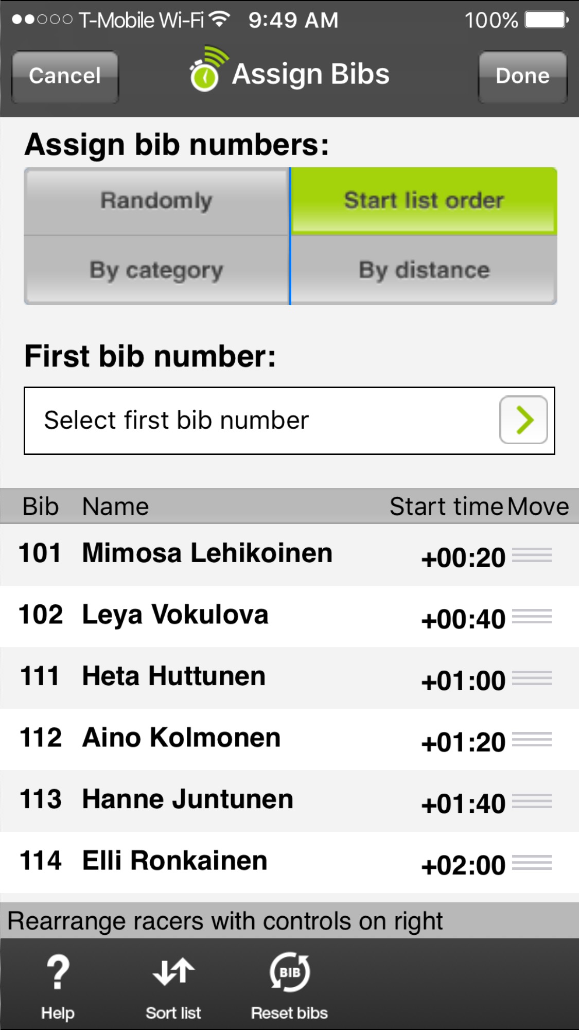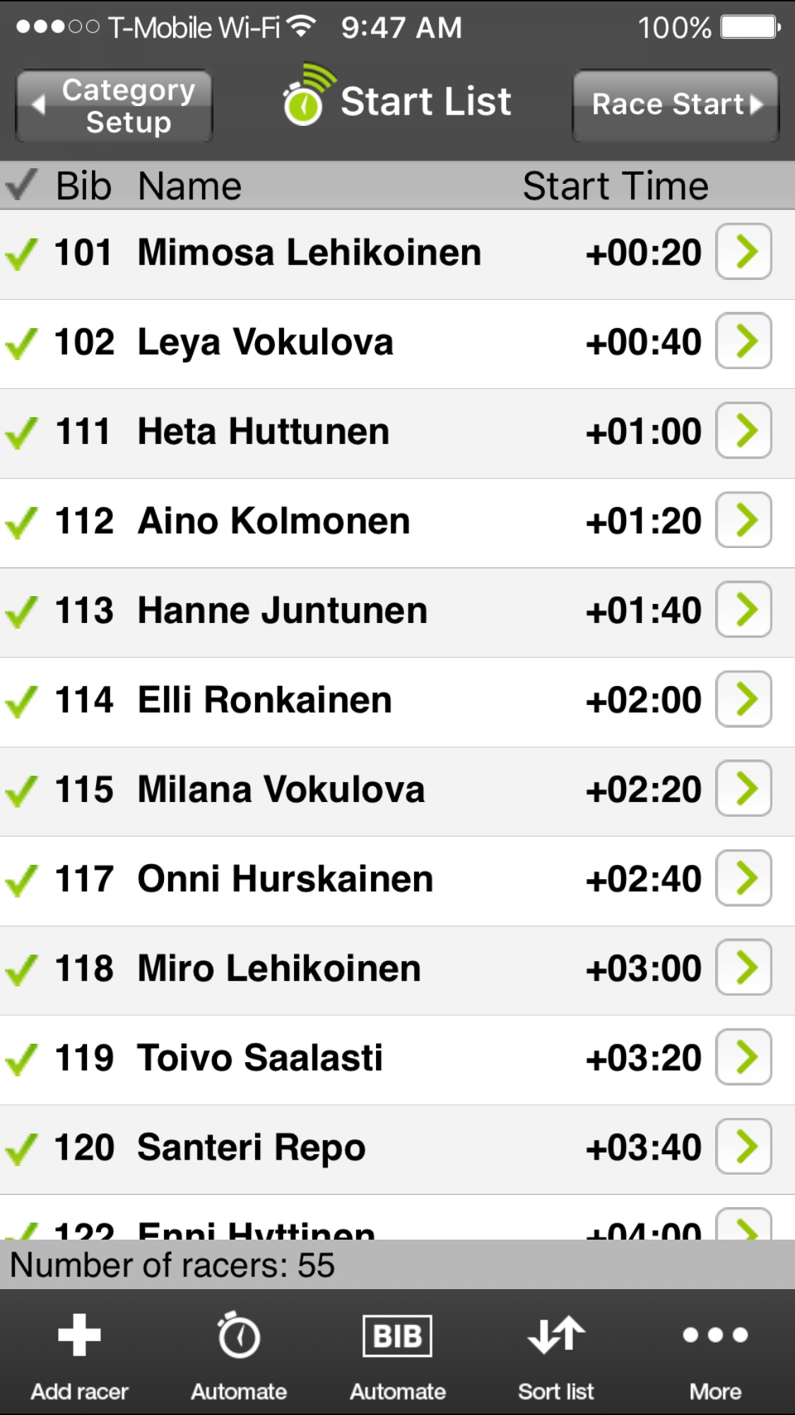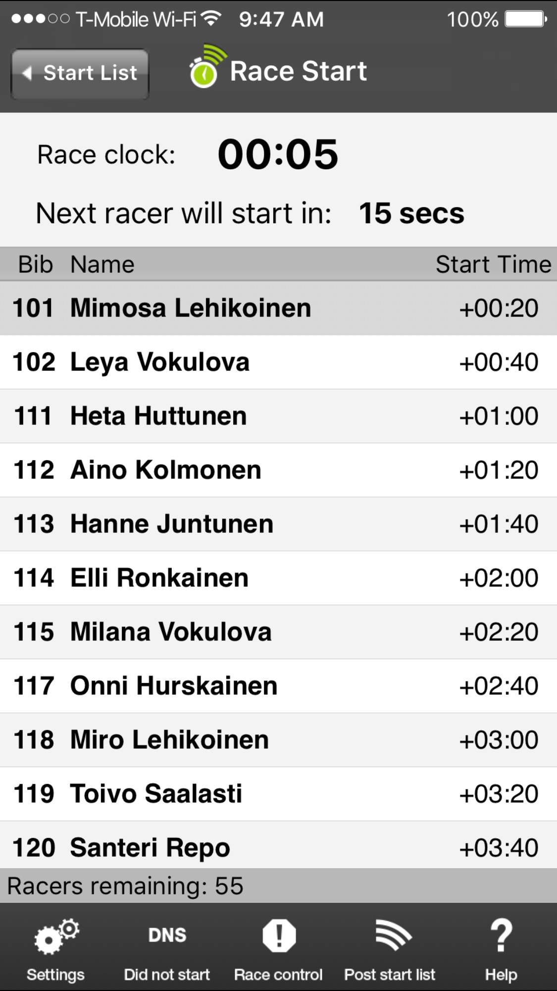 - Post the final start list before the race to give coaches / parents access to the start list for split-timing with the app