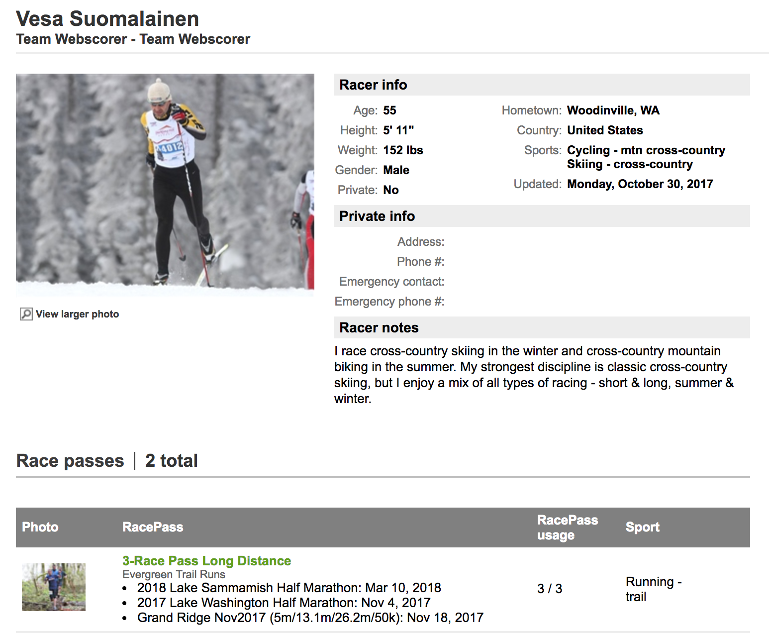 - Anyone who wants to purchase a RacePass must have or create an account on Webscorer