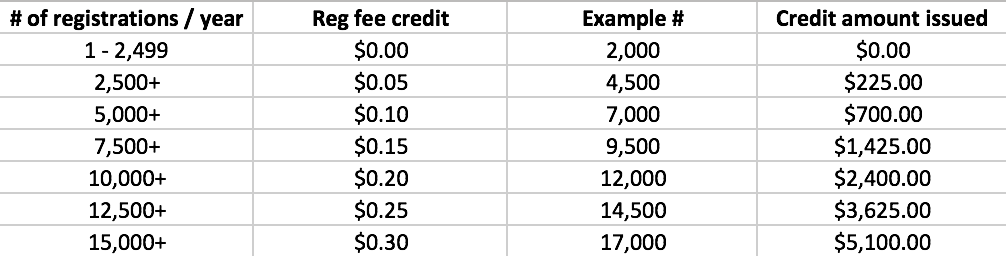 5. If the count exceeds the minimum threshold, all registrations qualify for the credit